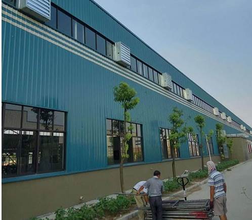 如果沒有足夠的門窗通風,應打開牆洞進行負壓通(tōng)風,以保證廠房所需風量;風機應安裝在(zài)距地麵1米~1.5米的位置,使對流處於適(shì)當的高度,並保證風機水幕係統營造清爽的環境。框架結構在安裝位置穩定,強度能支撐整個設(shè)備和維修(xiū)人員的重量。